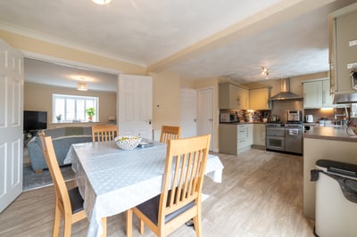 Set in a desirable none-estate location on the edge of the village is this spacious four bedroom bay fronted detached house. The property occupies a generous plot and features entrance hall, cloakroom, lounge and large kitchen/dining/family room. On the first floor there is a modern family bathroom and four good size bedrooms, the main having en-suite. To the exterior there are enclosed gardens with a large patio and covered seating area. A driveway offering ample hard standing for six vehicles leads to a garage and studio/workshop. ** PROMPT VIEWING IS RECOMMENDED **