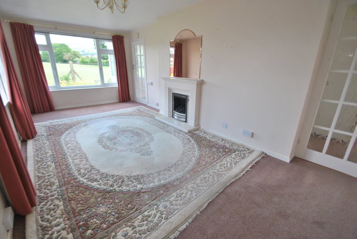 Lounge: with double aspect windows with lovely views over school playing fields and to Cleeve Hill, feature stone fireplace fitted with gas coal effect living flame fire.