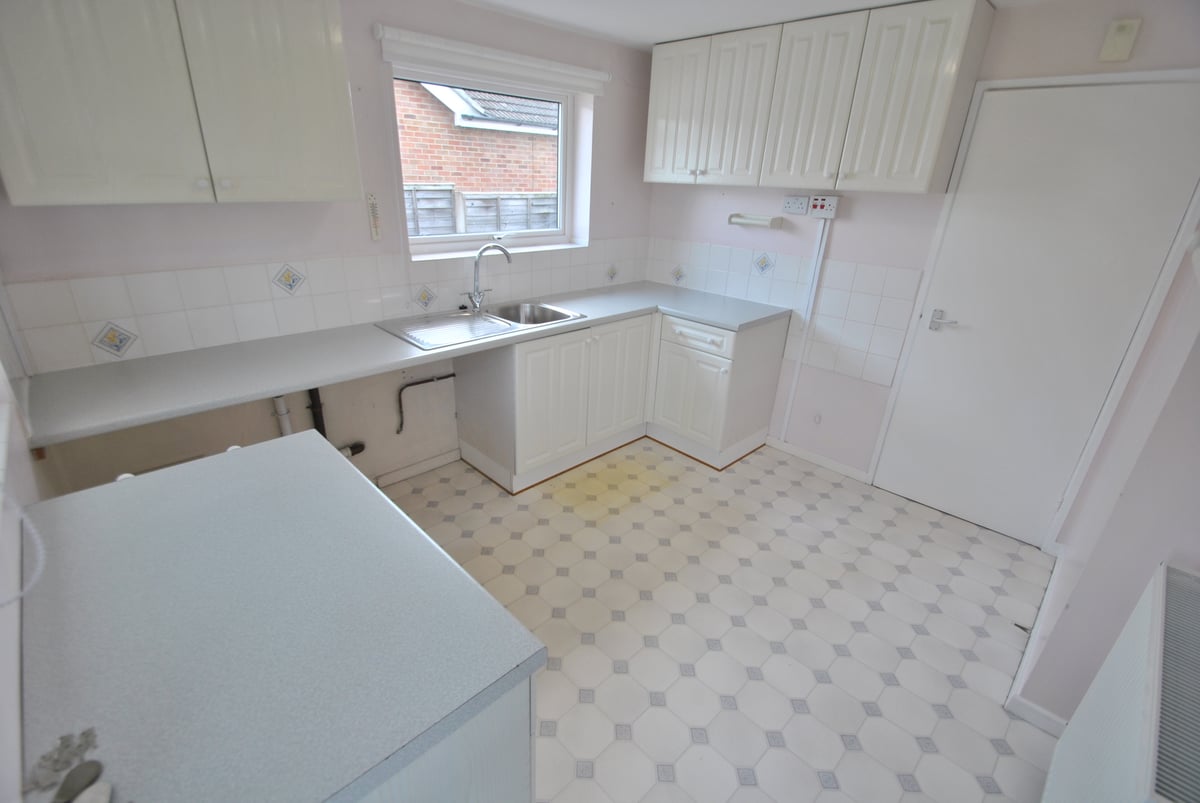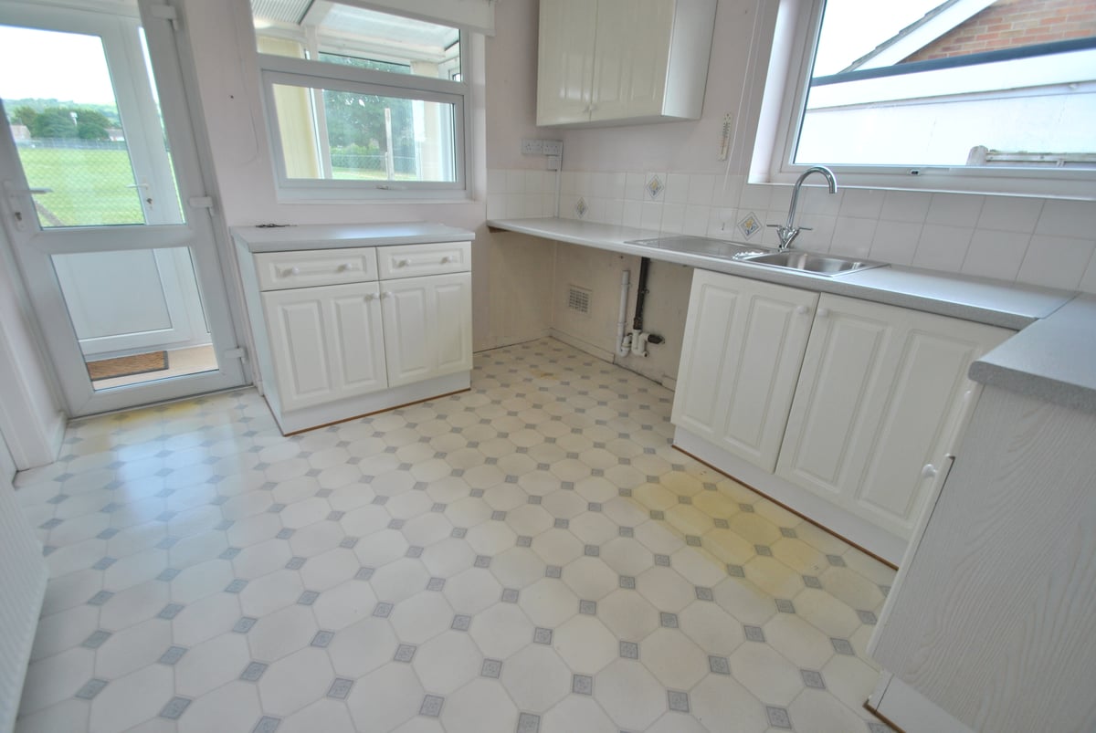 Kitchen: double aspect windows with access to lean-to conservatory with lovely views to Cleeve Hill, fitted with a matching range of eye and base level storage units, space and plumbing for washing machine and appliance space.