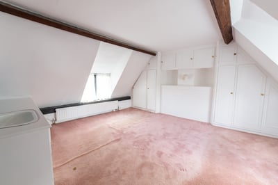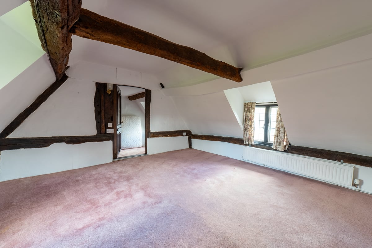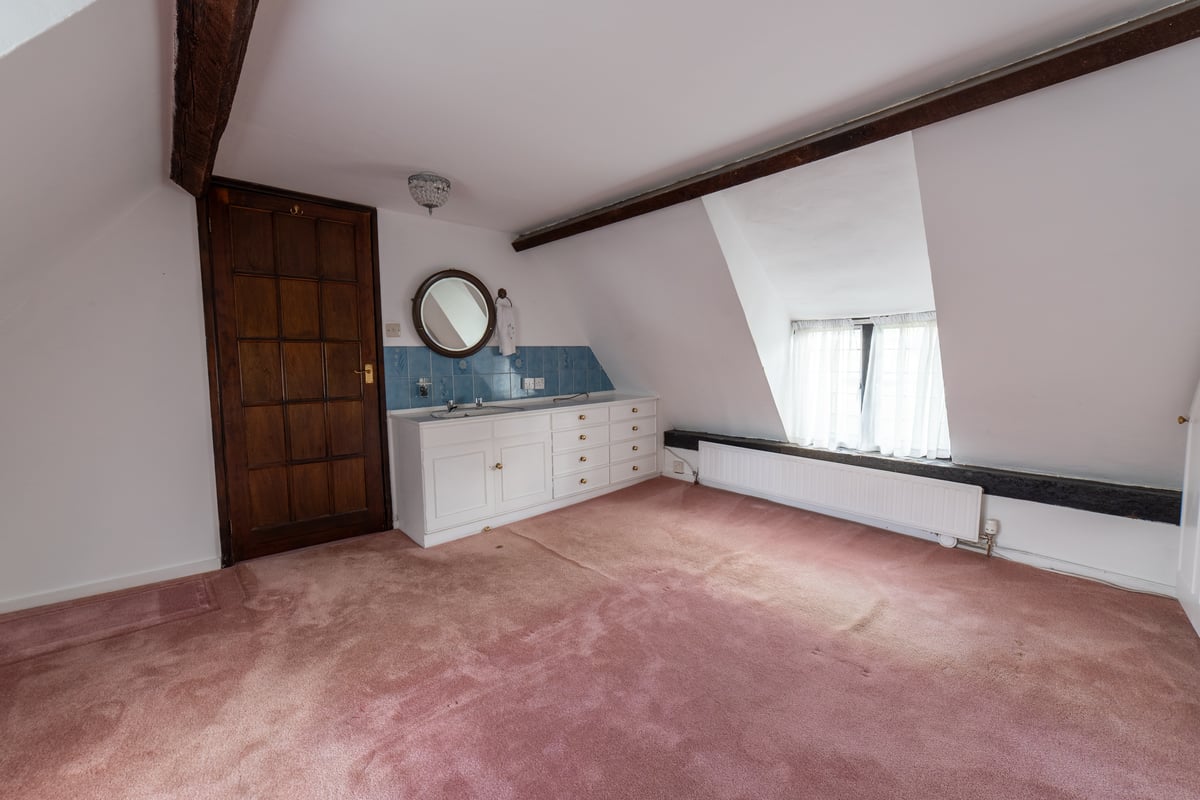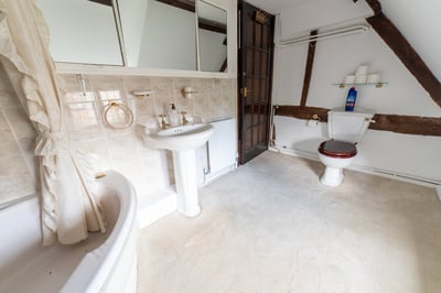 First floor: landing: window to side aspect, trap to loft space, built-in airing cupboard, door to bathroom and bedrooms one and two with connecting door from bedroom two to bedroom three. Bathroom: window to side aspect, suite comprising corner bath with tiled splash backs fitted with Mira shower unit, wash hand basin and WC. Bedroom one: double aspect windows, exposed timber beams, vanity unit and built-in wardrobes and drawer units. Bedroom two: double aspect windows, built-in double wardrobes, exposed timber and wall beams, door to bedroom three. Bedroom three: window to side aspect, exposed timber ceiling and wall beams and built-in wardrobe.
