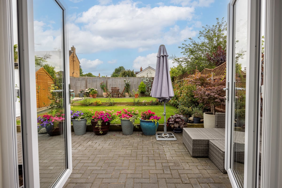 Reception hall with doors to cloaks cupboard, bathroom, lounge and bedrooms one and two and trap to loft space with loft ladder. Lounge: feature log burner with granite hearth and oak mantle. Open plan kitchen/diner/family room with French doors to patio and landscaped garden. Extensively fitted kitchen with roof lantern, comprising a matching range of eye and base level storage units with built-in and integrated appliances to include fan assisted oven, gas hob and extractor hood, dishwasher, fridge-freezer and door to side aspect. Bathroom: window to side aspect, modern fully tiled suite with semi sunken bath, built-in separate shower, vanity unit and WC. Bedroom one: window to front aspect, fitted with a matching range of double wardrobes and storage cupboards. Bedroom two: window to front aspect.