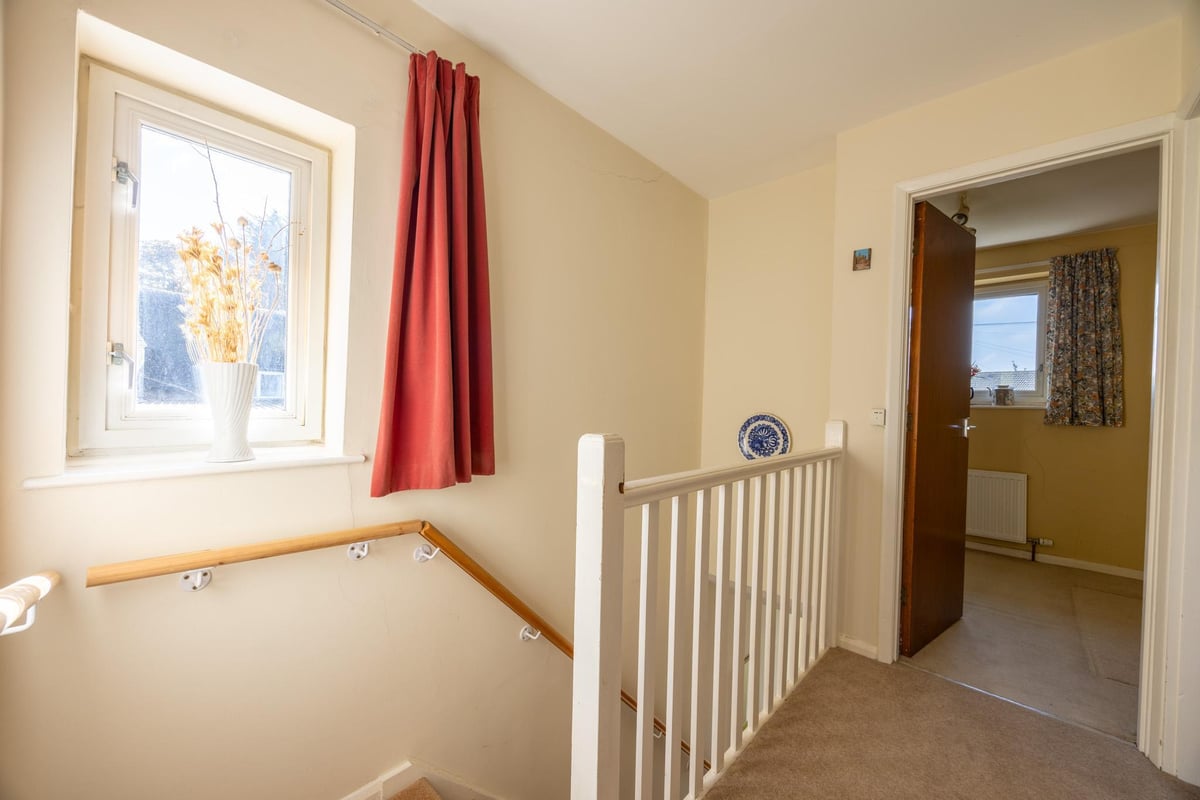 First floor: galleried landing, window to side aspect, trap to loft space, doors to bathroom and bedrooms one, two and three. Bathroom: window to rear aspect, white suite comprising bath with tiled splash backs fitted with shower, wash hand basin and WC. Bedroom one: window with attractive outlook and fitted wardrobes. Bedroom two: window with attractive outlook, airing cupboard housing gas combination boiler. Bedroom three: window to front aspect.