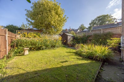 Rear garden: enclosed with walling and wooden fencing with patio area and laid to lawn with various flower and shrub borders, garden shed. Garage: concrete sectional garage with power and light.