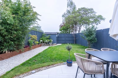 Exterior: front garden with stone chipped driveway offering hardstanding for approximately three vehicles, raised wooden planters with wood chippings and stocked with bay trees. Garden is partly enclosed and laid to lawn with various flower and shrub borders. Electric charging point, gated side access leads to storage shed. Rear garden: West facing being enclosed with wooden panel fencing and porcelain patio with raised planters stocked with bamboo, various trees and flower and shrub borders, garden being laid to lawn, garden shed, outside solar lighting around patio and to raised borders and outside power.