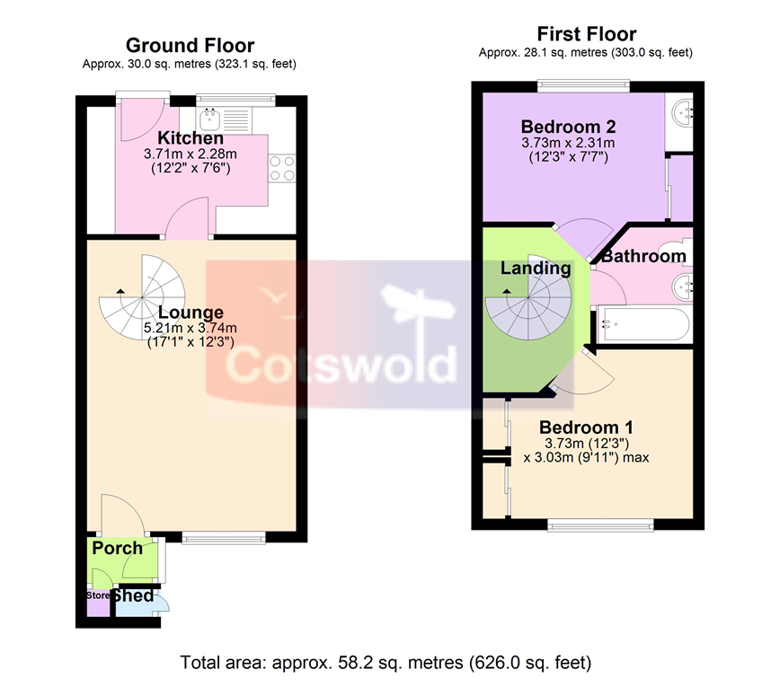 Entrance hall: built in cupboard, door to lounge/diner. Lounge/diner: window to front aspect, spiral staircase to landing and first floor living accommodation, door to kitchen. Kitchen: window to rear aspect, fitted with a matching range of eye and base level storage units, integrated fan assisted oven and hob and appliance space, door to rear garden.