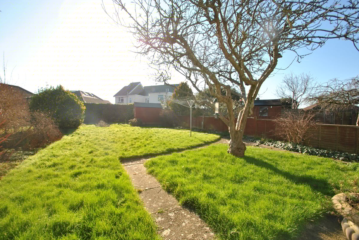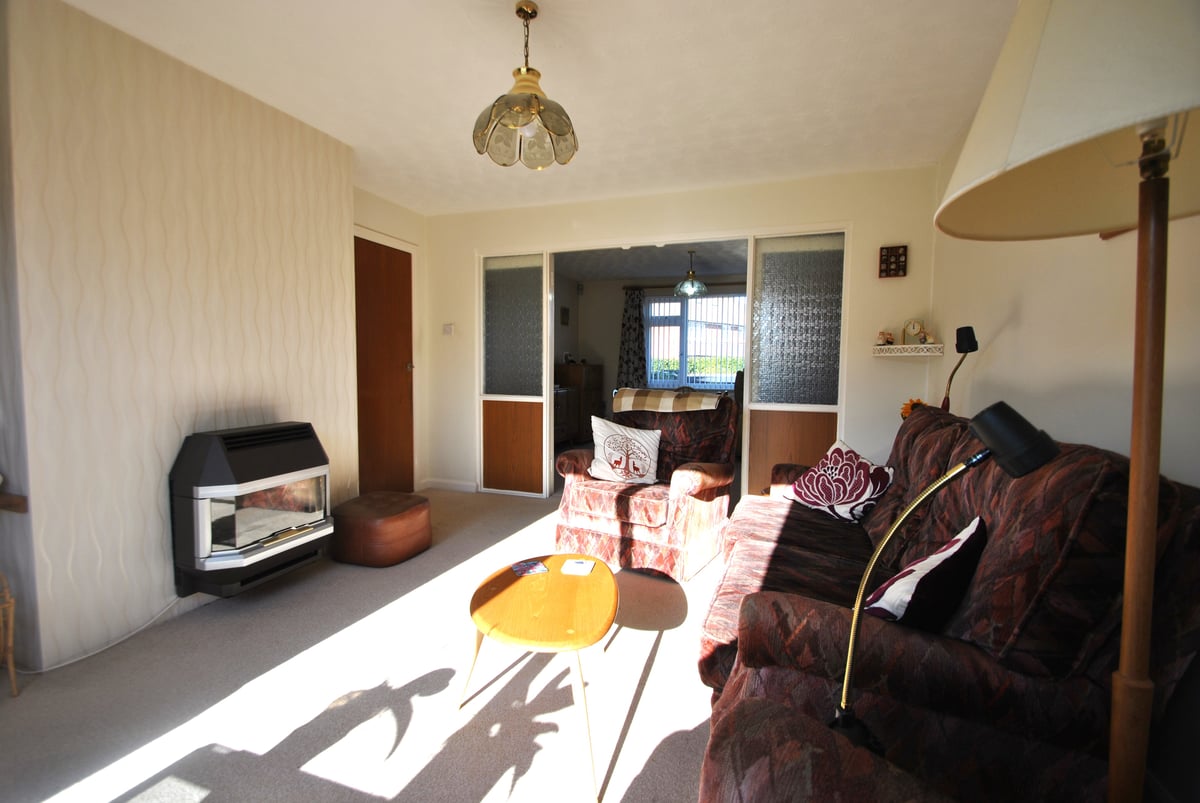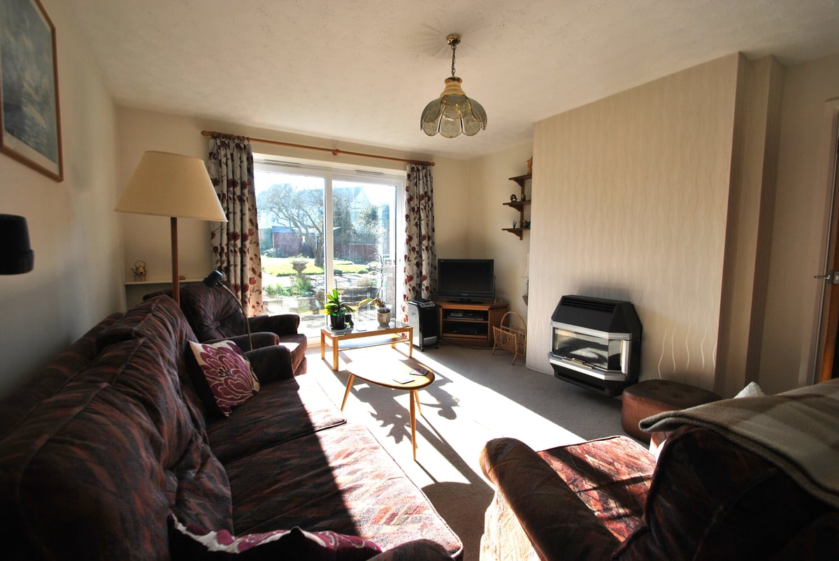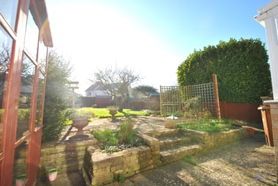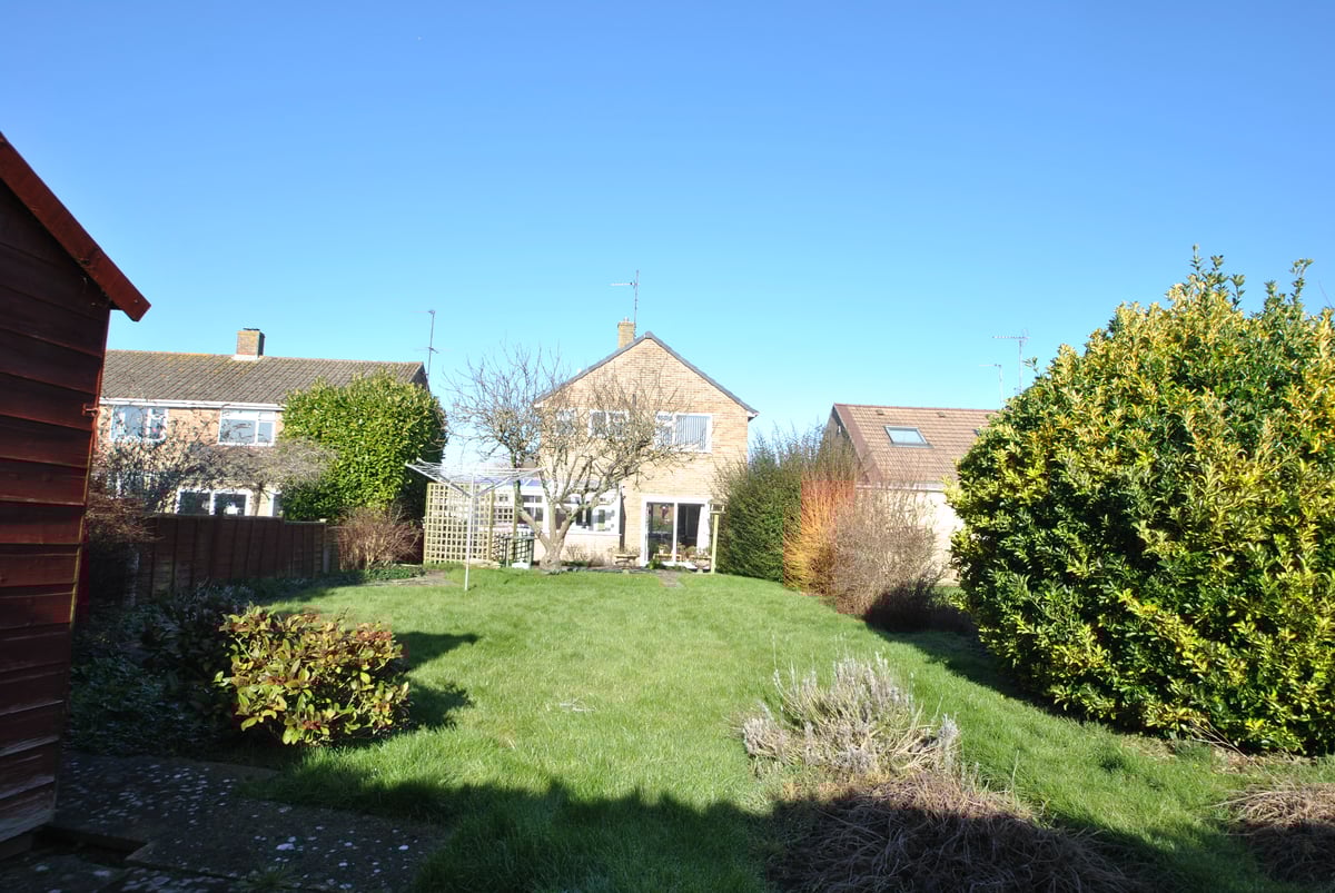 Exterior: Front garden with walling, flower and shrub borders, laid with stone chippings, side access to rear garden and car hardstanding for two vehicles. South facing rear garden with patio area, mainly laid to lawn with hedging and wooden panel fencing, trees and flower and shrub borders, wooden summer house and garden shed, pedestrian door into garage. Garage with up and over automatic door and power sockets.