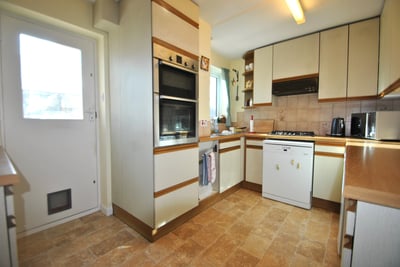 Entrance porch with door to garage, spacious entrance hall, stairs to first floor and doors to dining room, lounge, kitchen and under-stairs storage cupboard. Lounge: patio doors to rear garden and gas coal effect fire. Dining room: window to front aspect and double doors to lounge. Kitchen: window and door into conservatory, eye and base level storage cupboards, eye level built-in Bosch oven and grill, four ring gas hob with extractor hood and space for appliances. Conservatory: power, light and space and plumbing for washing machine.