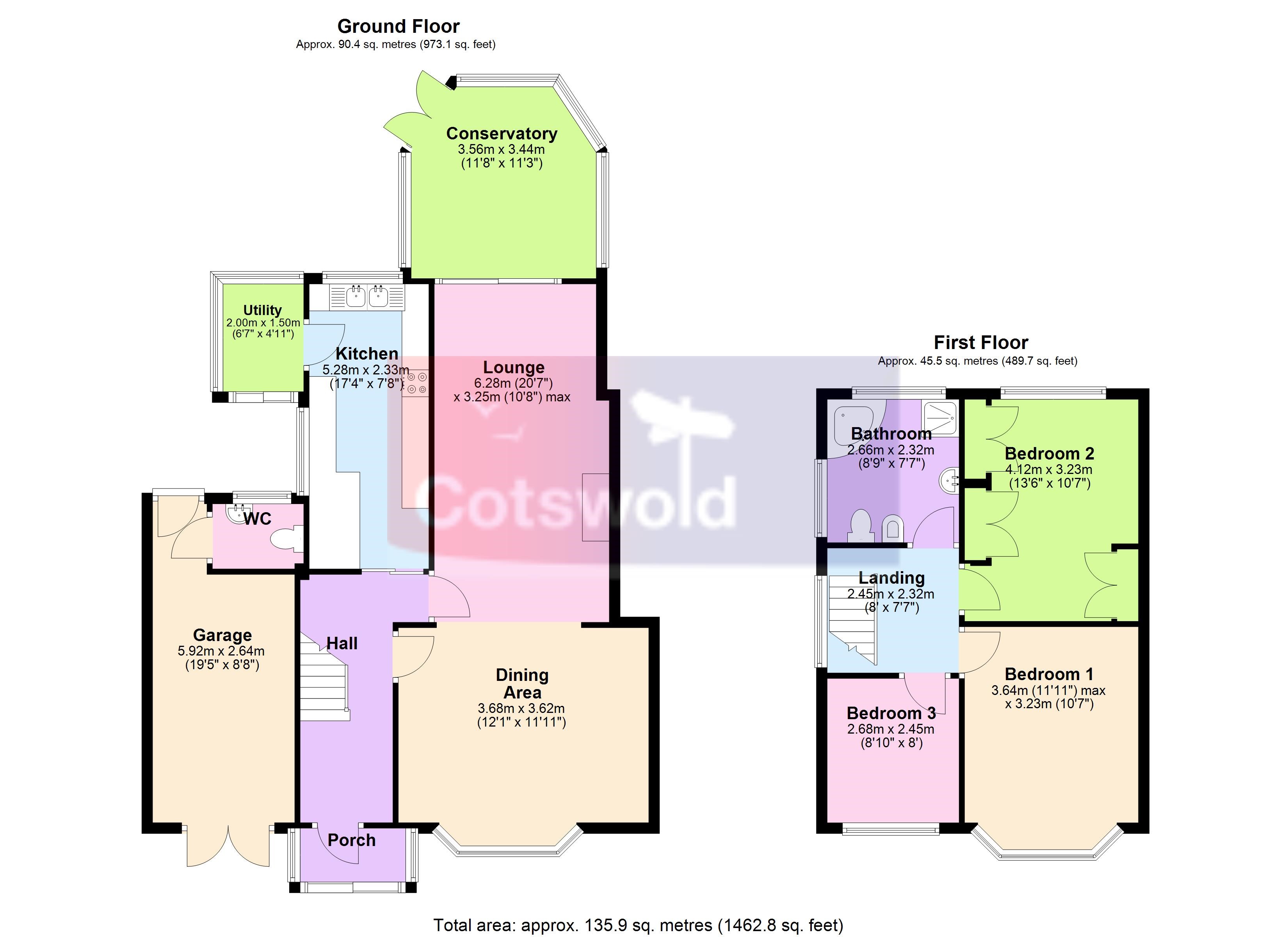 Landing: trap to loft space with loft ladder, doors to bathroom and bedrooms one, two and three. Bathroom: window to rear aspect, fully tiled suite comprising corner bath, built-in separate shower, fitted with Mira shower unit, wash hand basin, bidet and WC. Bedroom one: window with lovely views over countryside and surrounding hills, fitted wardrobes and airing cupboard. Bedroom two: bay window with lovely views to Cleeve Hill, built-in wardrobes. Bedroom three: window with view to Cleeve Hill, built-in wardrobes.