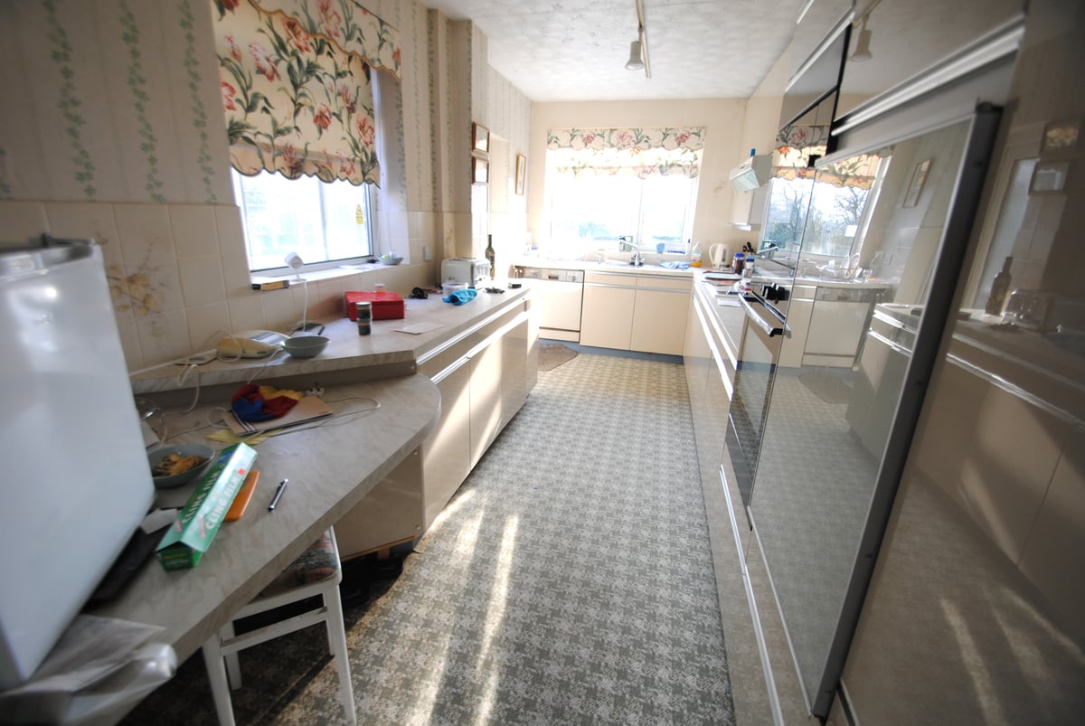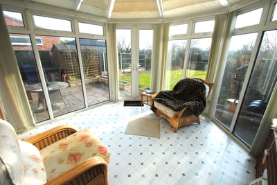 Entrance porch to entrance hall with doors to lounge/dining room, kitchen/breakfast room and stairs to landing and first floor living accommodation. Lounge/dining room: bay window to front aspect, gas coal effect flame fire (not tested), double glazed door to conservatory. Conservatory: French doors to patio and rear garden and with lovely views to open fields. Kitchen/breakfast room: window to rear garden, door to lean- to with appliance space, kitchen fitted with a matching range of eye and base level storage units, breakfast bar, built-in fan assisted oven and microwave, integrated fridge-freezer and dishwasher.