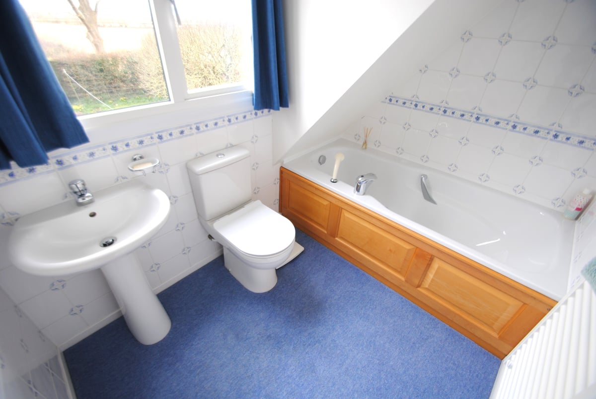 First floor: landing, built-in airing cupboard and doors to bathroom, bedrooms one, two and three. Bathroom: lovely views to Cleeve Hill, fully tiled white suite comprising bath, wash hand basin and W.C. Bedroom one: window to front aspect. Bedroom two: window to front aspect. Bedroom three: lovely views to Countryside and Cleeve Hill.