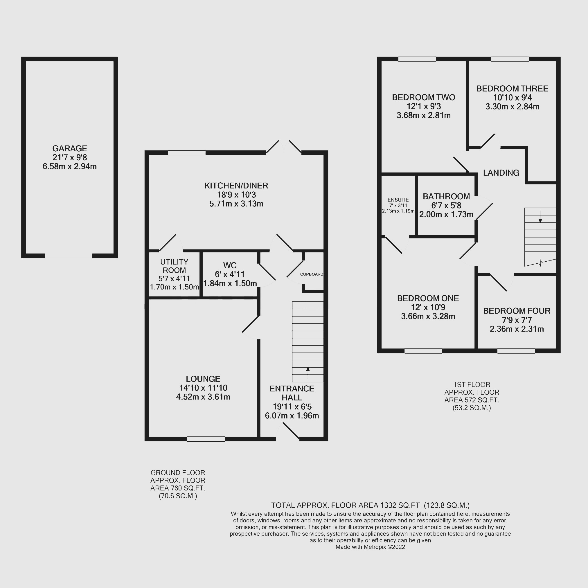 First floor: landing trap to loft space and doors to family bathroom and bedrooms one, two, three and four. Bedroom one: window to front aspect and door to en-suite. En-suite: modern white suite comprising built-in shower with rain style head, vanity unit, WC and heated chrome towel radiator. Bedroom two: window to rear aspect. Bedroom three: window to rear aspect Bedroom four: window to front aspect.
