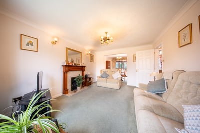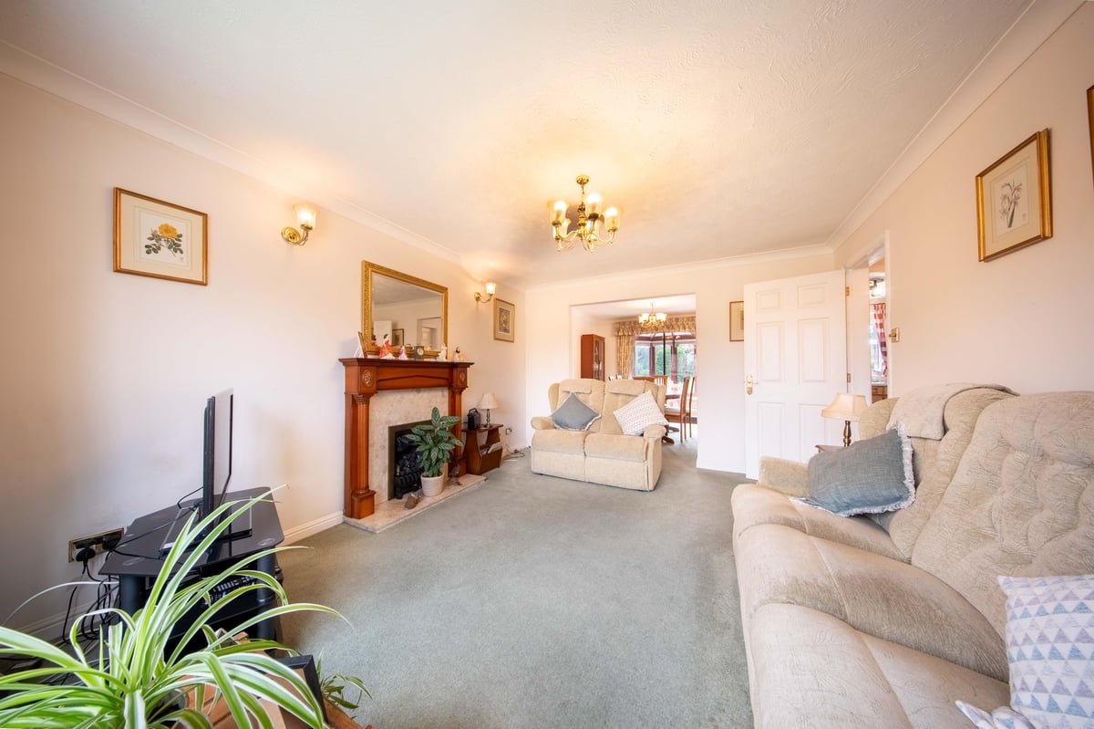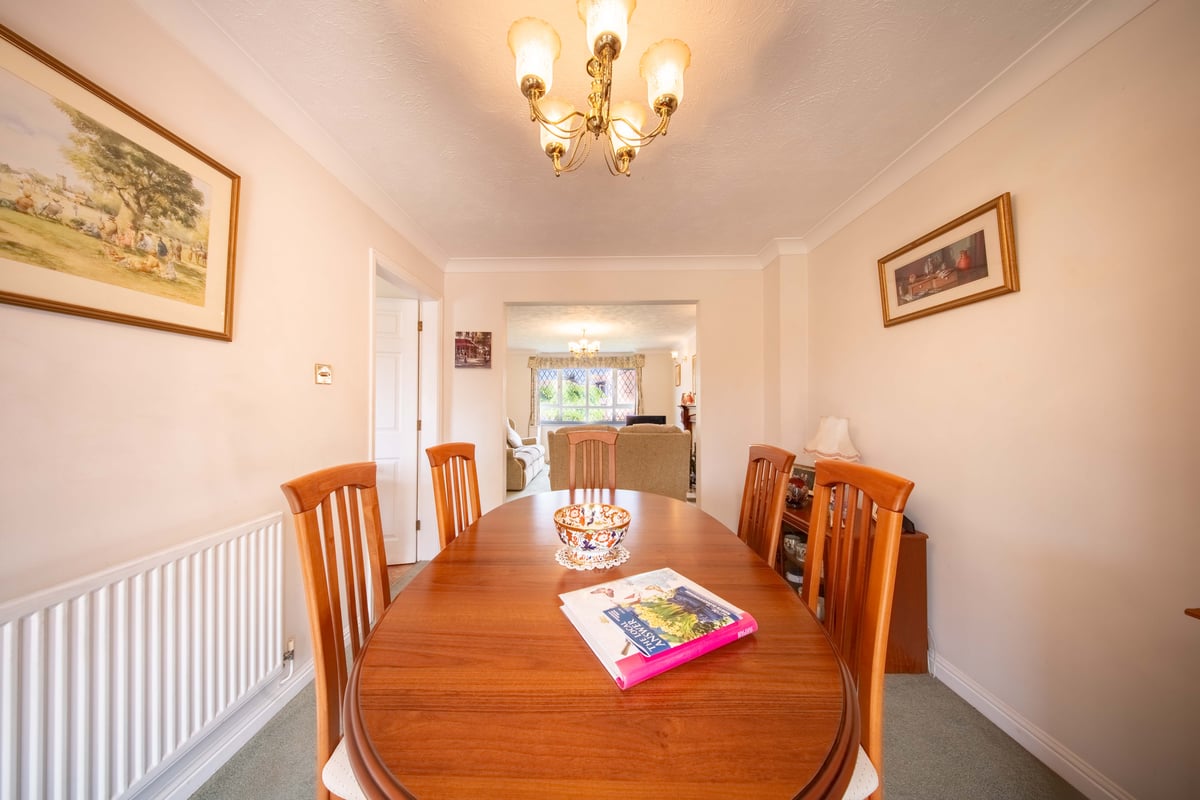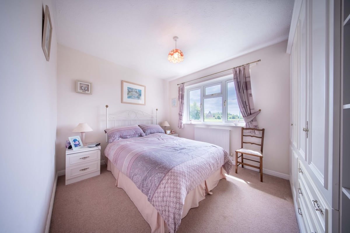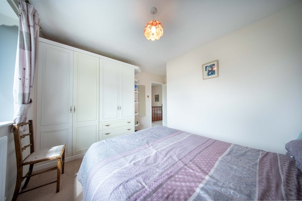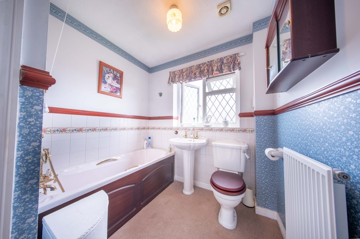 First floor: landing with window to side aspect, trap to loft space and doors to bathroom and bedrooms one, two and three. Bathroom: white suite comprising bath, wash hand basin, WC and built-in airing cupboard. Bedroom one: bay window to front aspect, fitted wardrobes and drawer unit, en-suite with built-in separate shower, wash hand basin and WC. Bedroom two: window with lovely views to open fields with fitted wardrobe. Bedroom three: window with views over fields, fitted desk and wardrobe.