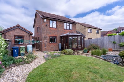 An opportunity to acquire this spacious Redrow Homes built, three bedroom bay fronted detached house. The property is set in a highly sought after location within a small cul-de-sac, offering well planned living accommodation featuring cloakroom, generous lounge, dining room, conservatory and fitted kitchen with built-in appliances. On the first floor there is a bathroom suite and three good size bedrooms the main having an en-suite. To the exterior a driveway leads to a detached garage with remote controlled door and there is an attractive south facing enclosed rear garden with two separate patio arrears. * NO ONWARD CHAIN *