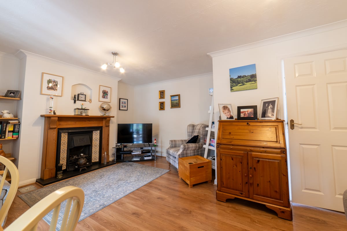 Entrance porch to entrance hall with doors to cloakroom, separate shower room, lounge/dining room and kitchen and stairs to landing and first floor living accommodation. Cloakroom: modern white suite. Shower room: built-in shower. Kitchen: window to front aspect, fitted with a matching range of eye and base level storage units, built-in fan assisted oven and five ring gas hob with extractor hood, appliance space. Lounge/dining room: window and door to conservatory, feature fireplace fitted with gas coal effect fire and wooden laminate flooring. Conservatory: French doors to patio and rear garden and built-in storage cupboards.