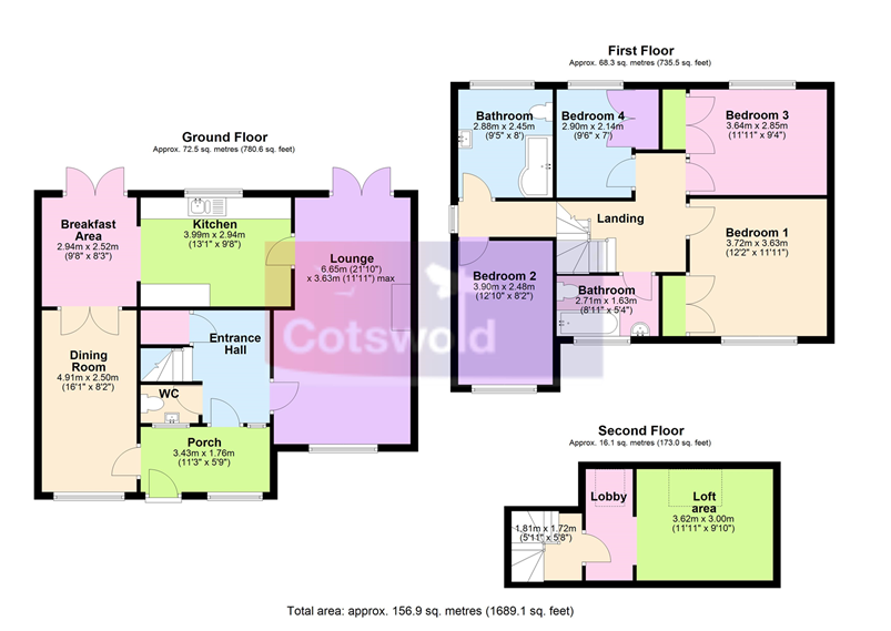 First floor, split stairs to landings with doors to family bathroom and bedrooms one, two, three and four, stairs to second floor. Family bathroom: fully tiled white suite comprising bath with electric shower unit, wash hand basin and WC. Bedroom one: lovely views to countryside and village church with built-in wardrobe. Bedroom two: views to village church. Bathroom : Modern bathroom with white suite comprising Bath with shower, wash hand basin and W.C Bedroom three: window with views over gardens with built-in double wardrobe. Bedroom four views over gardens and built-in wardrobe. Stairs to second floor: converted loft area , Velux windows to rear aspect and built-in storage cupboards.