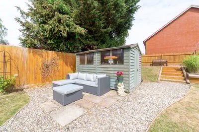Exterior: Front garden being enclosed with wooden fencing and beach hedging, a drive way offers ample hard standing for four vehicles the garden being stocked with various flower and shrub borders, gated side access to rear garden. Rear garden: large enclosed garden with patio, being laid to lawn with various trees and flower and shrub borders, to the end of the garden there are steps up to an elevated garden area being laid to lawn with flower borders.