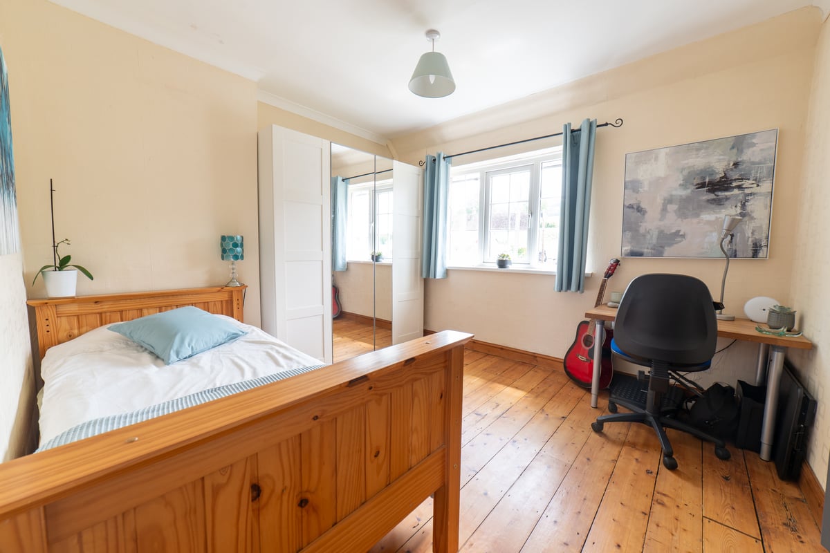 • Bedroom Three: Countryside views and built-in double wardrobe.