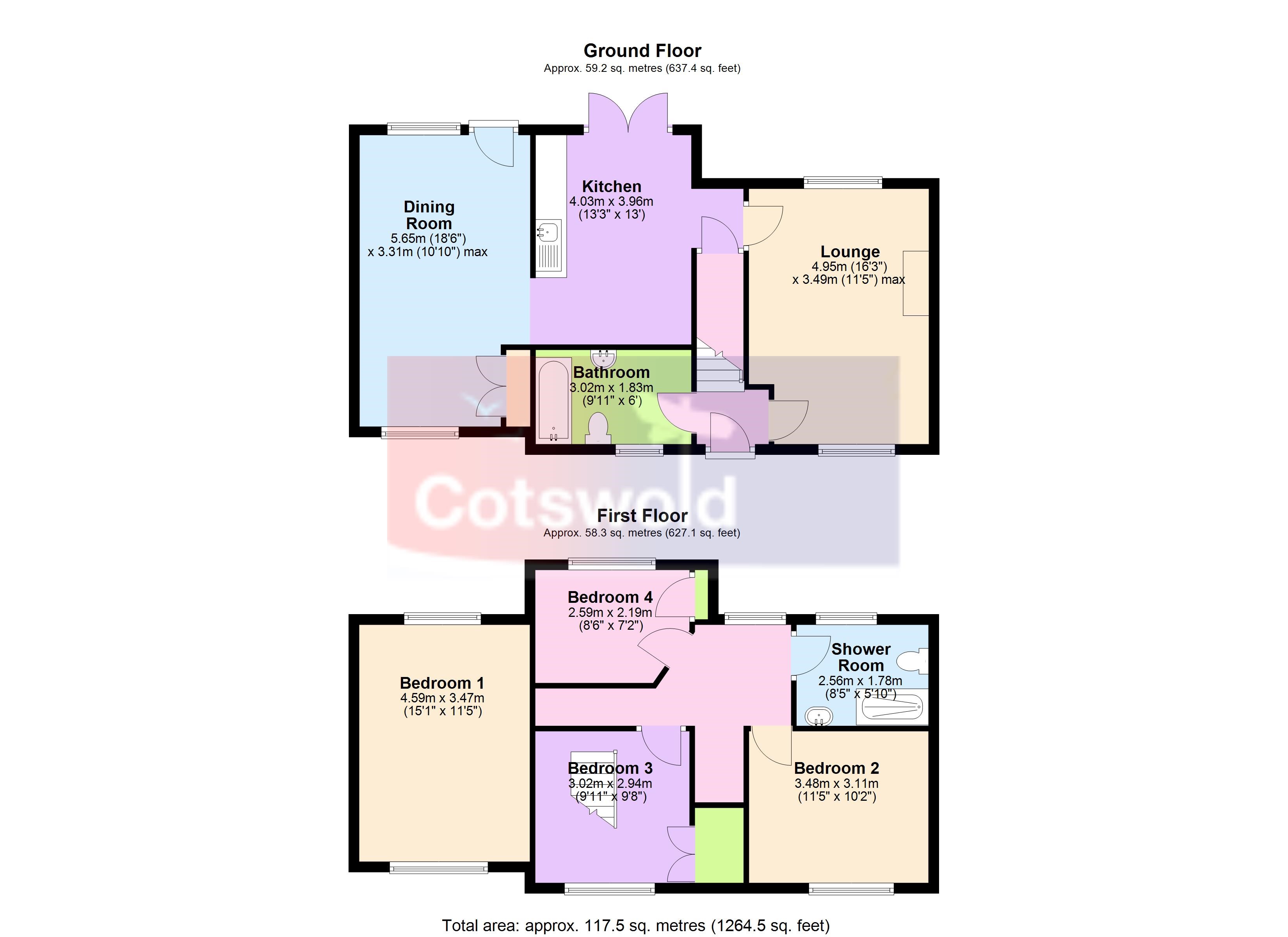 • Entrance Porch & Hallway: Access to the sitting room, bathroom, and stairs to the first floor.