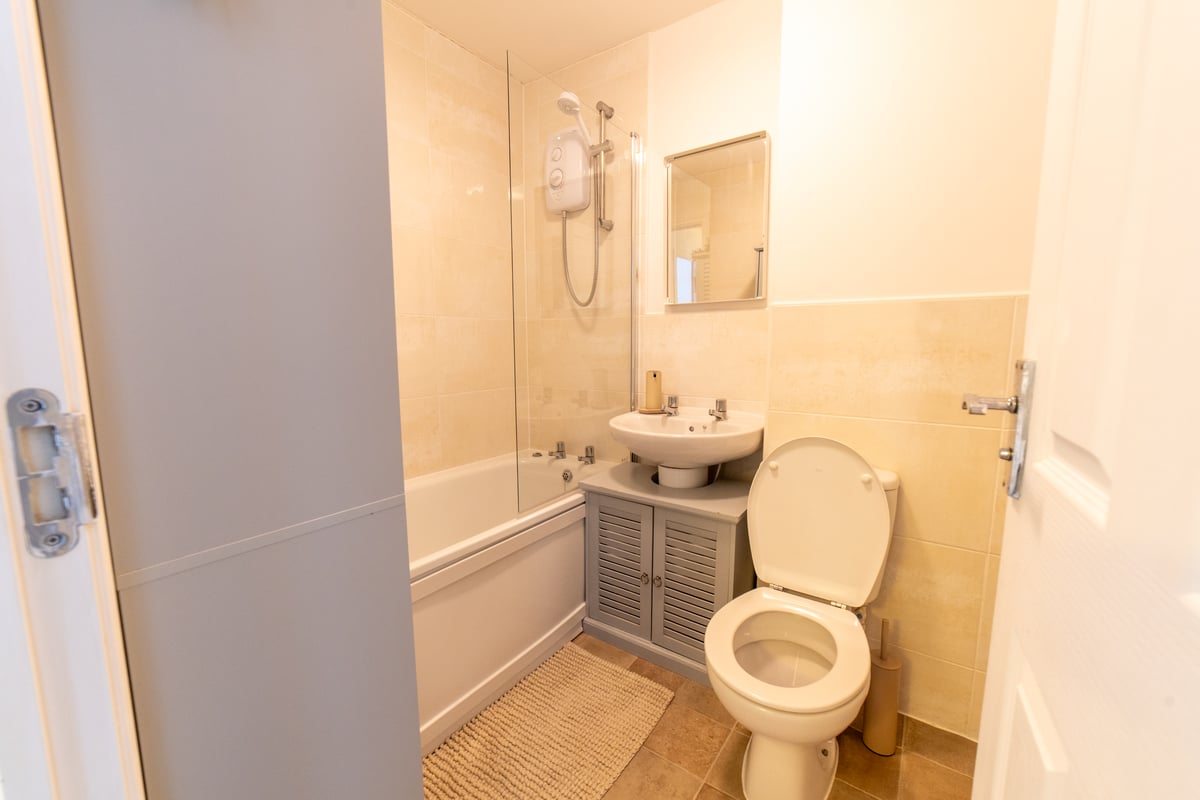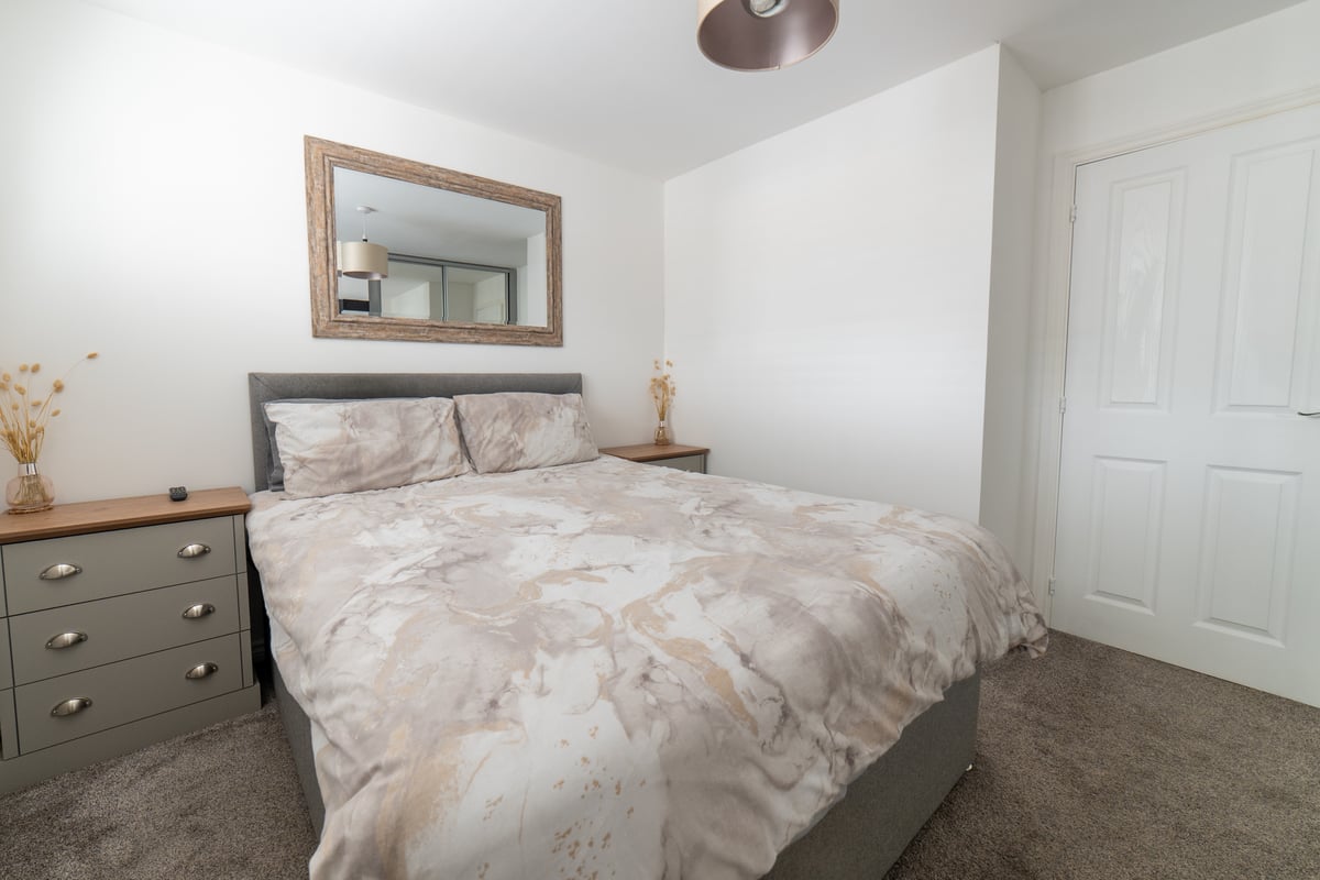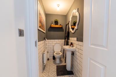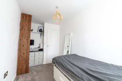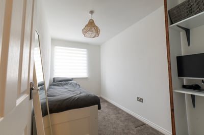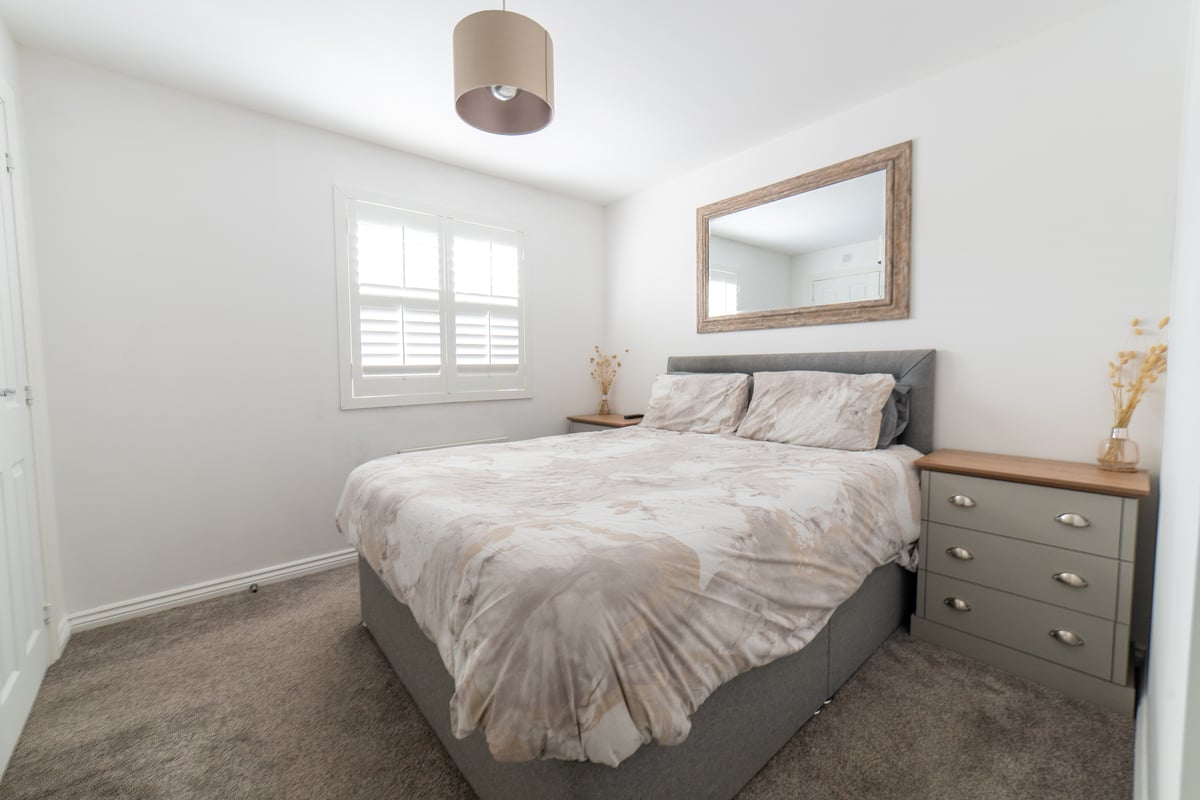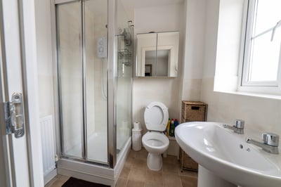 First floor landing: trap-to loft space and doors to bathroom and bedrooms one, two and three. Bathroom: modern white suite fitted with tiled splashbacks with bath, Mira shower unit and shower screen, wash hand basin and WC. Bedroom one: with window shutters to front aspect, built-in double wardrobe and door to en-suite. En-suite: window to front aspect, modern white suite comprising built-in separate shower with Mira shower unit, wash hand basin and WC. Bedroom two: window to rear garden and built-in double wardrobe. Bedroom three: window to rear garden.