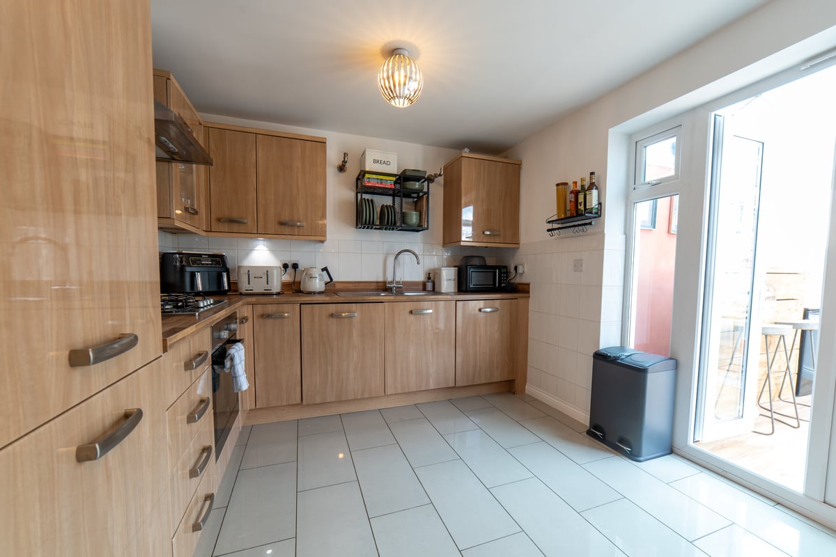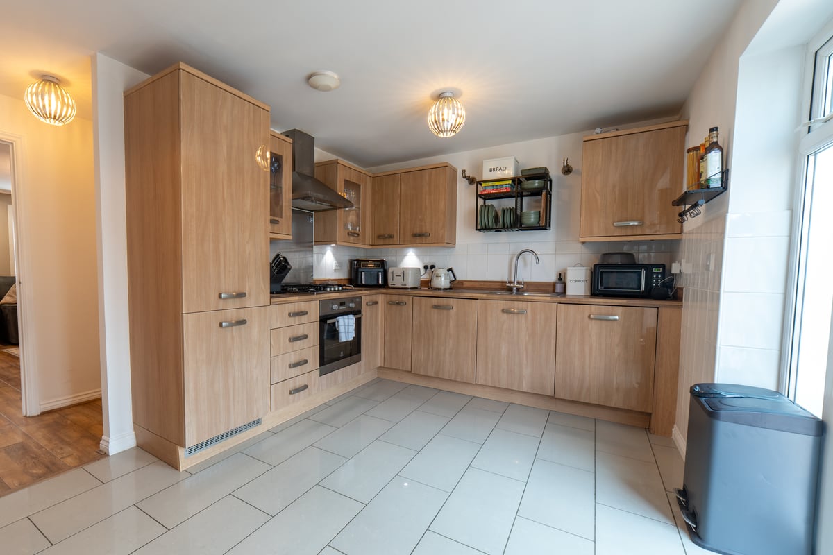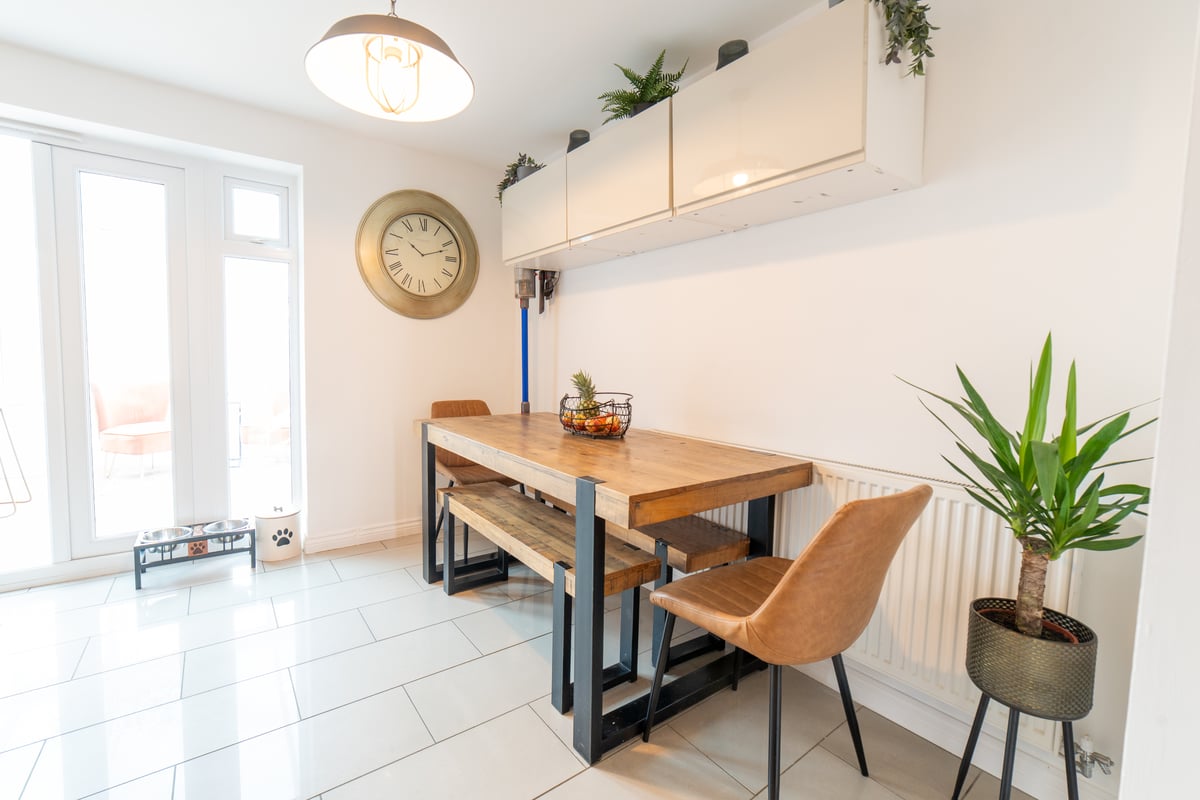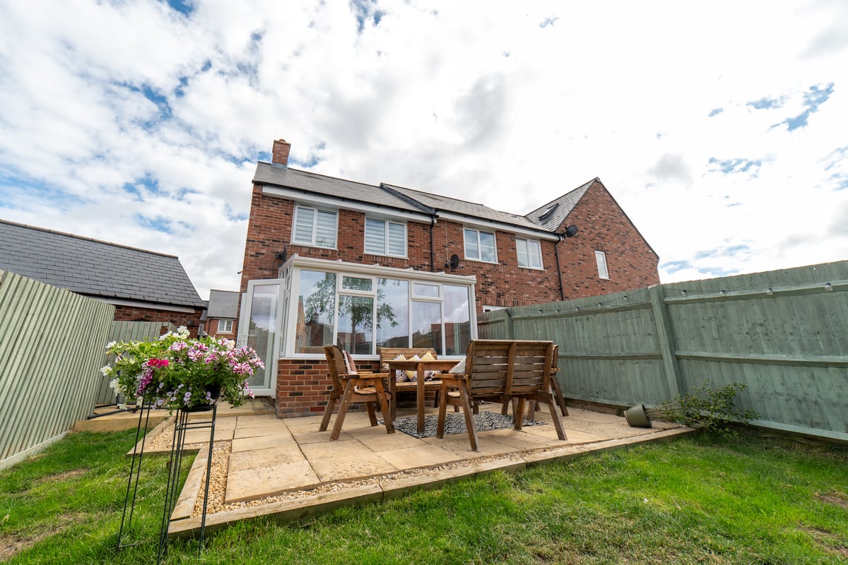 A spacious modern, superbly presented three bedroom end of terrace house situated in a highly sought after location. The property occupies a good size plot and comprises cloak room, generous lounge, conservatory and modern fitted kitchen/dining room with built-in and integrated appliances. On the first floor there is a modern bathroom suite and three good size bedrooms the main bedroom having en-suite. To the exterior is a driveway leading to a detached garage and an attractive enclosed west facing rear garden. **End of Chain**