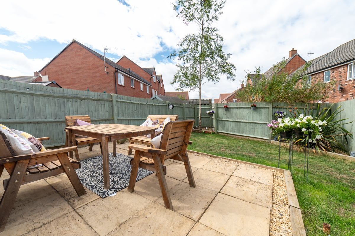 Exterior: front garden enclosed with natural railings being mainly laid to stone chippings and driveway leading to garage and gated access to rear garden. Rear garden: attractive West facing garden being enclosed with wooden panel fencing, two patio areas, having been laid to lawn and stocked with silver birch tree and various flowers and shrub borders. Garage: power and light and pedestrian door to side aspect.