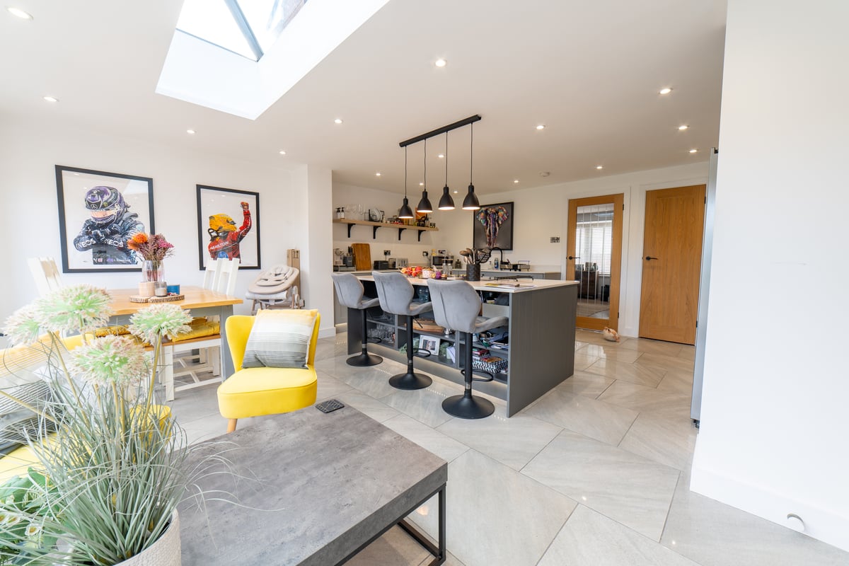 - Open plan kitchen/dining/family room